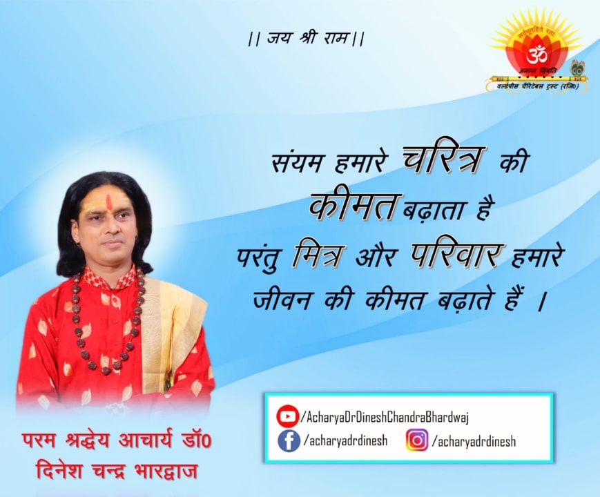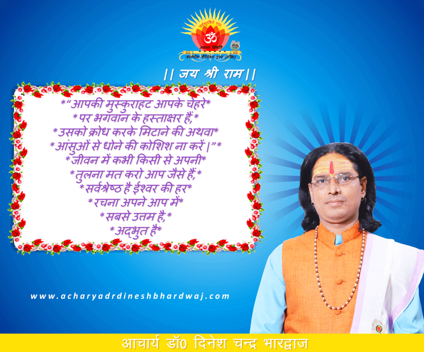 आचार्य जी एक विद्वान एवं व्यक्तित्व के धनी व्यक्ति हैं आप धर्म के साथ साथ सामाजिक कार्यों से से जुड़कर जनसेवा जैसा महान कार्य कर रहे हैं |